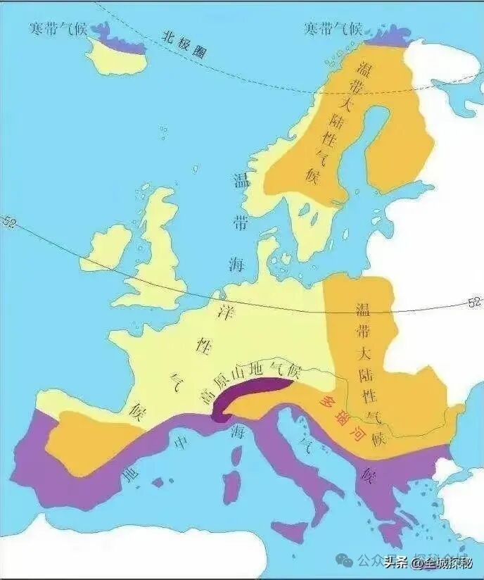 欧洲气候分布图,多瑙河流域横跨三个气候带