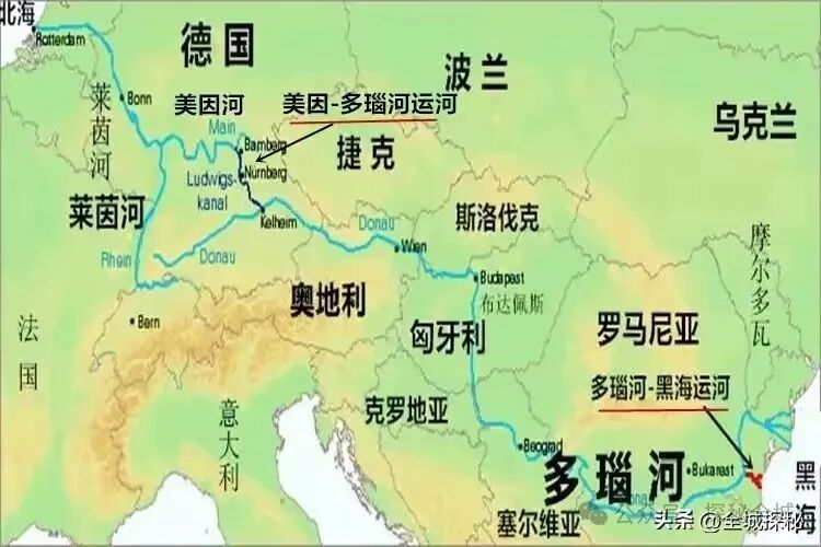 而同样是前面提到的多瑙-拉贝-奥得大运河,又让多瑙河与波罗的海连通,等等。