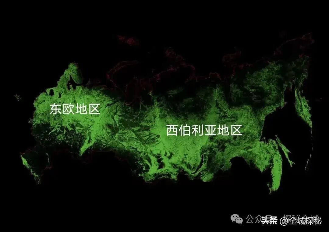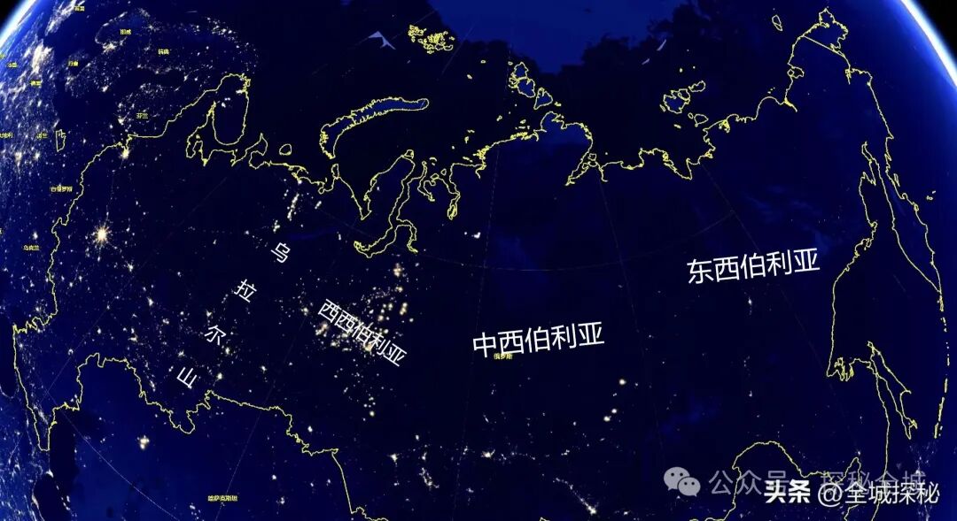俄罗斯夜光图,西伯利亚地区存在大片的黑暗区域
