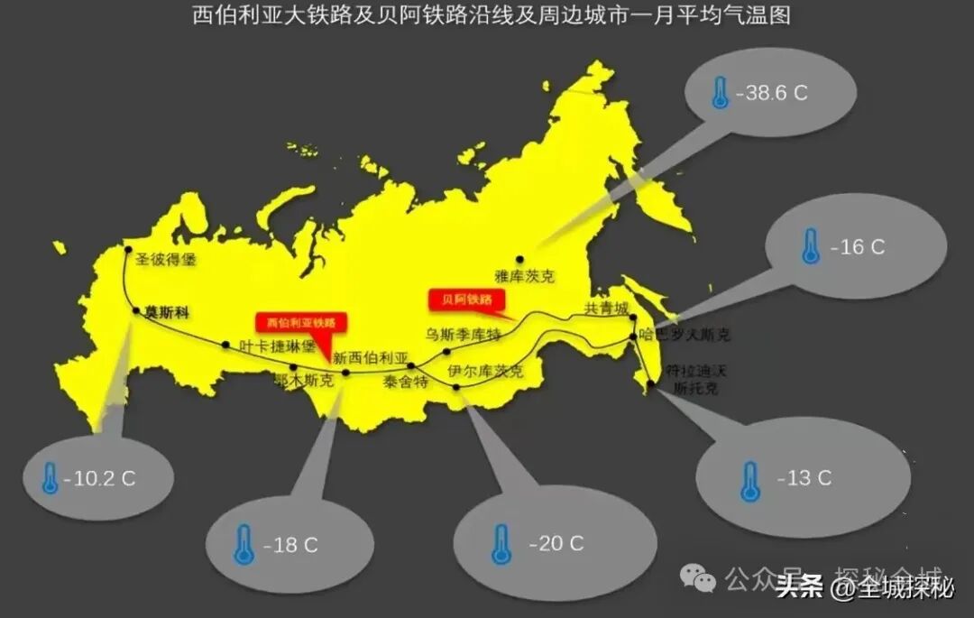 西伯利亚大铁路沿线冬季温度