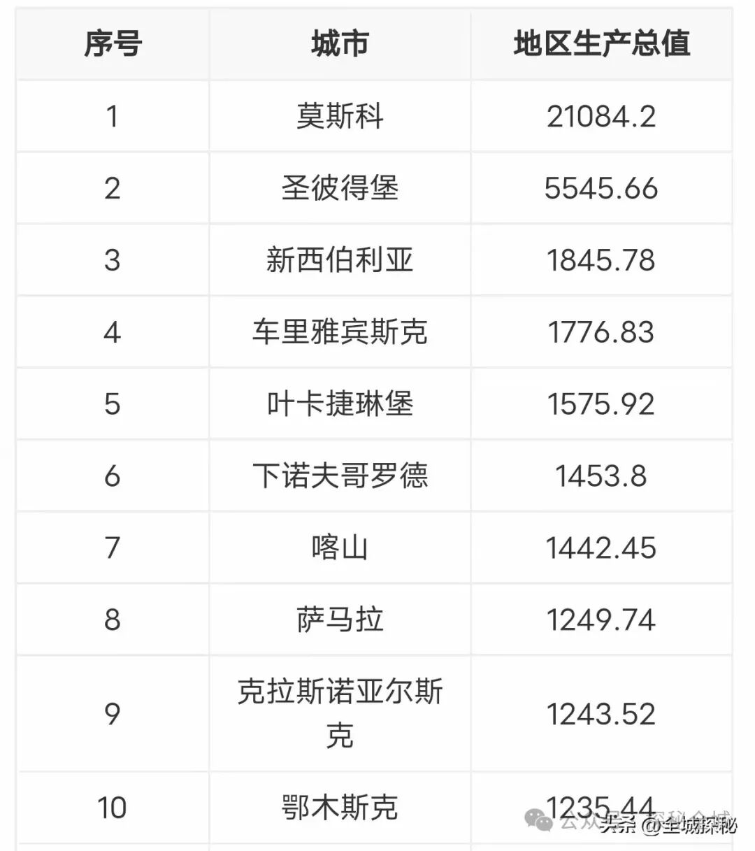 2022年俄罗斯部分城市GDP(单位:亿元人民币)
