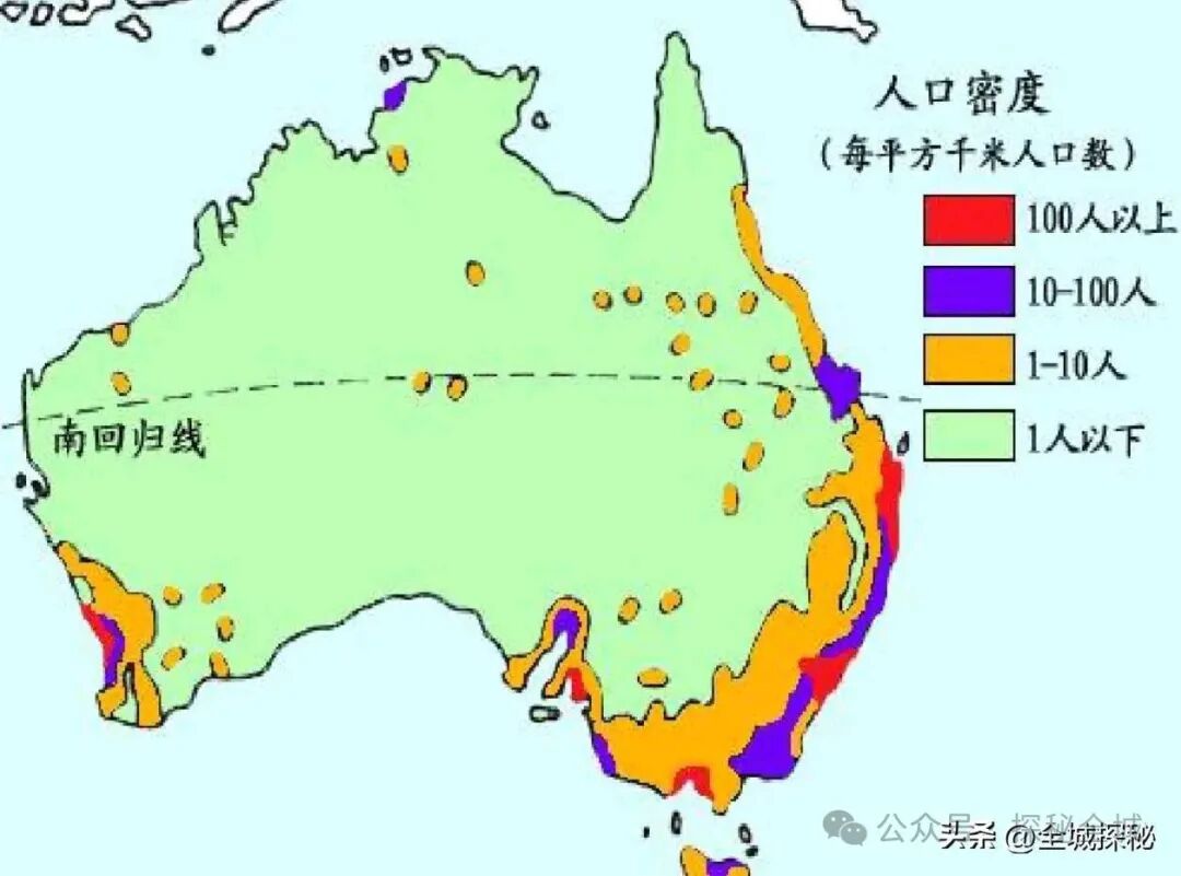 澳大利亚国土面积约769万平方公里,人口约2600万,每平方公里约3.4人;
