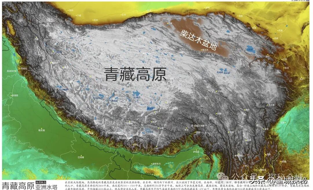 但是呢,柴达木盆地既然跟平均海拔超过4000米的“世界屋脊”青藏高原攀上了关系,那么我们就得意识到,它不能仅仅用面积去衡量,还得加上海拔高度。