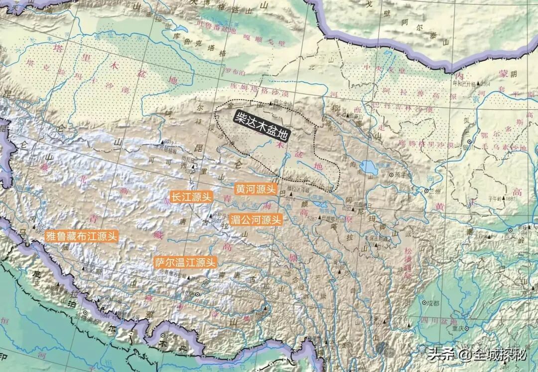 这意味着,即使那些世界性大河的源头跟柴达木盆地一样,都位于青藏高原,但彼此之间的距离也非常遥远;