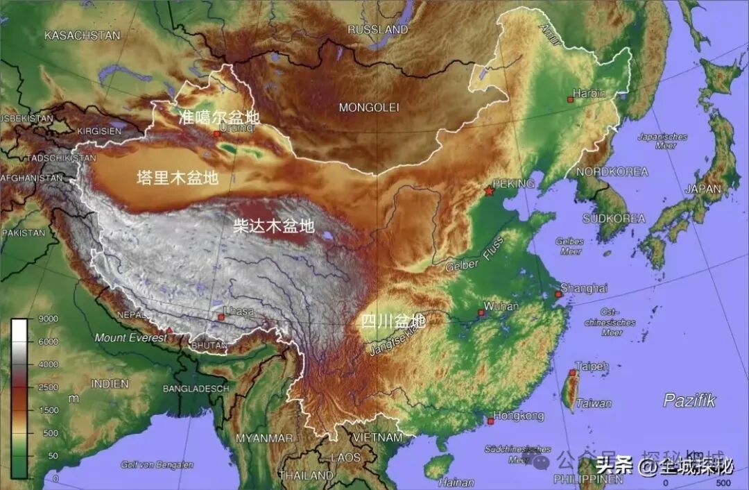 我国四大盆地,海拔高度一目了然