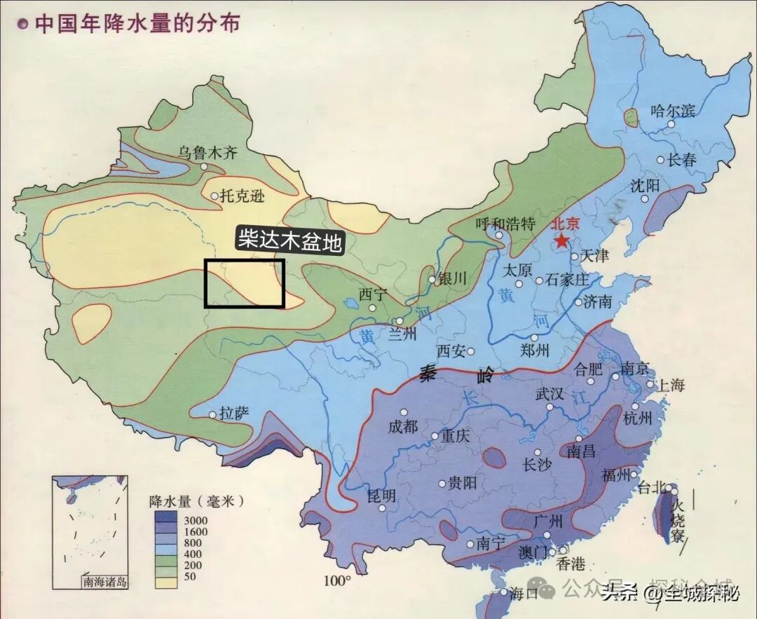 我国降水量分布图,柴达木盆地降水稀少