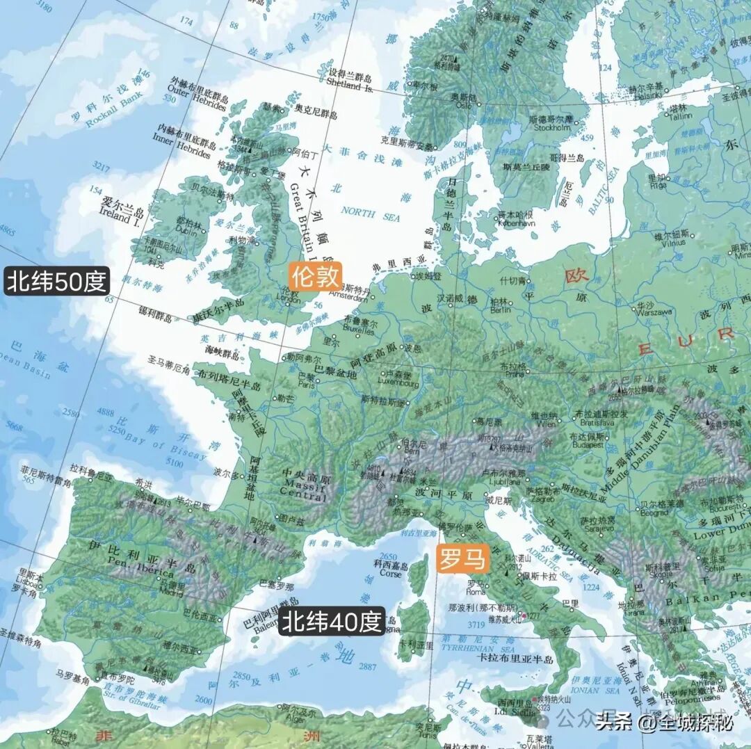 意大利首都罗马,地处北纬42度,并且气候上属于非常宜人的地中海气候,但其年均气温也有15.5℃,英国首都伦敦,地处北纬51度附近,纬度已经相当高了,但其年均温度也有14℃左右;
