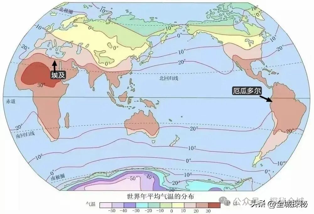埃及首都开罗,地处北纬30度附近,年均气温达到19-32℃,巴西首都巴西利亚,地处南纬15度47分,年轮气温也有17.7℃;