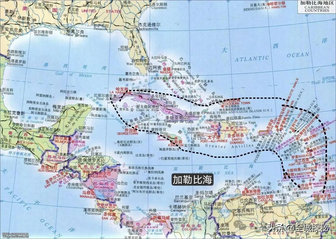 加勒比海实际上是西印度群岛跟中美洲地峡围起来的封闭海域