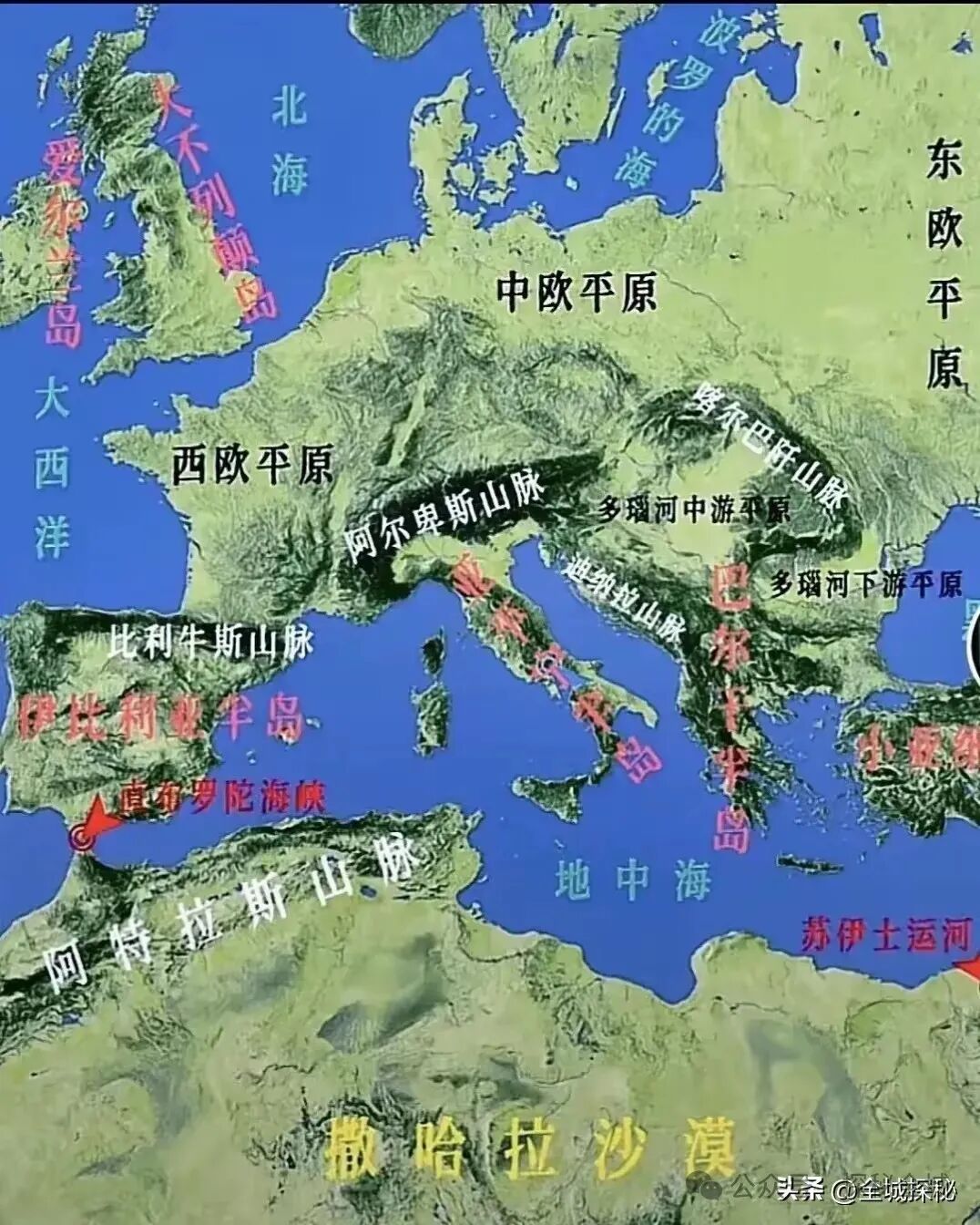 北边的欧洲,是世界上经济最发达的地区之一,南边的北非地区沙漠遍布,除了地中海沿岸地区外,大部分地方自然条件非常恶劣,是世界上比较落后的地区;