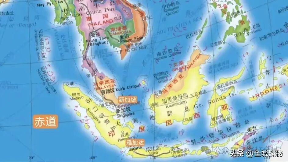 新加坡与雅加达距离很近,却分属北半球和南半球