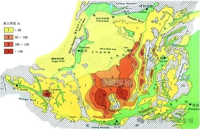 根据全城探秘查到的资料,黄土高原上的黄土层厚度,整体上可以以六盘山为界,分成两个部分,其中六盘山以东更厚,达到150-250米,以西厚度则基本不到100米,但有意思的是,整个黄土高原黄土层堆积最厚的地方,却是六盘山西侧的甘肃兰州,厚度达到336米。