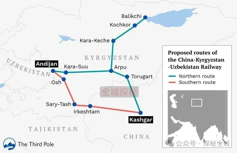 (全城探秘所有原创首发文章,抄袭洗稿必究!)中吉乌铁路,一直以来都备受关注,其起点位于我国新疆喀什,向西进入吉尔吉斯斯坦,终点是乌兹别克斯坦的安集延;