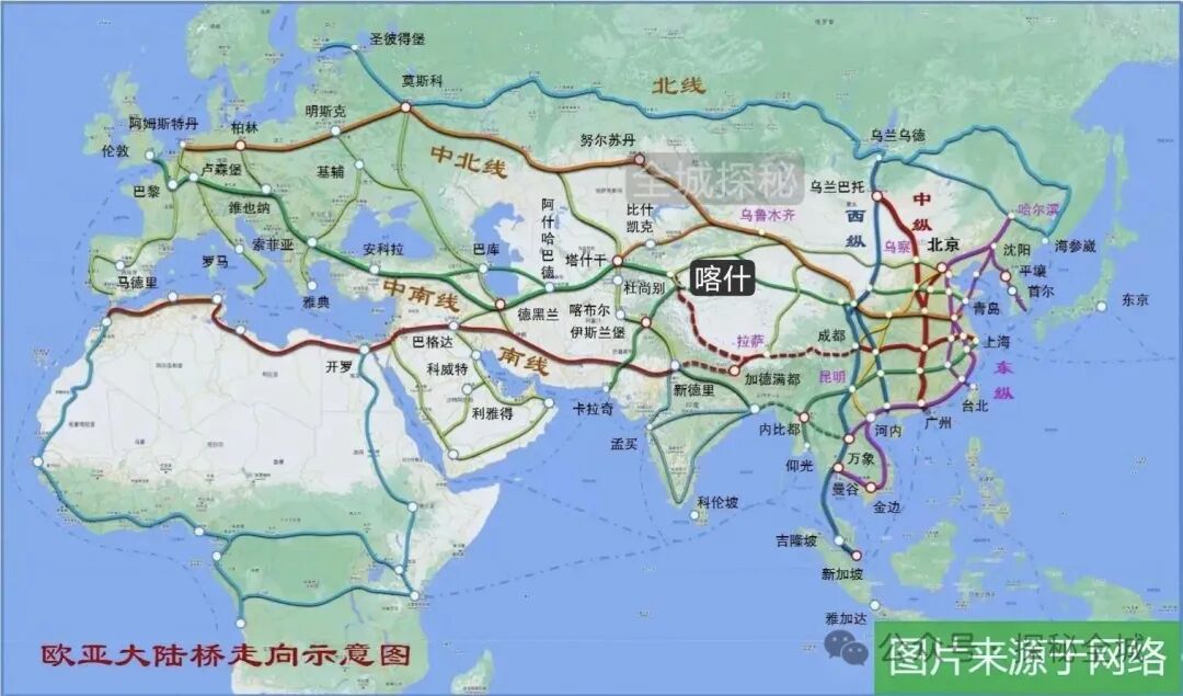 这意味着,一旦中吉乌铁路建成,并成功接入亚欧大陆铁路网络,喀什不仅将成为我国“西进”的桥头堡,更能成为整个亚欧大陆的交通枢纽和中心城市,其地理位置的优越性将得到极大提升。
