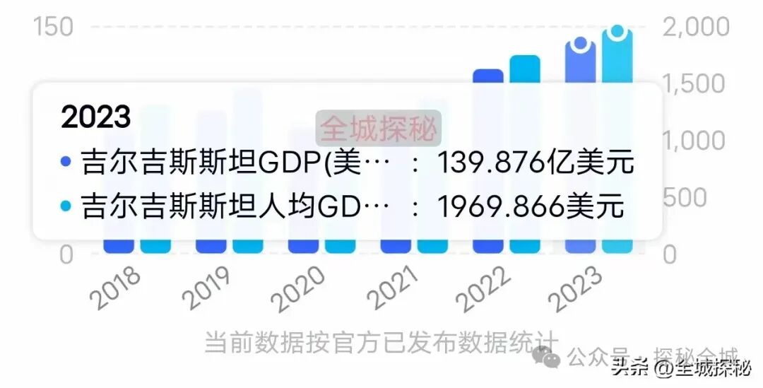 吉尔吉斯斯坦原本体量就不大,全国面积约19.99万平方公里,人口只有720万,截止2023年全国GDP也才139.87亿美元,而境内的中吉乌铁路部分,建设投资却高达47亿美元,占到其全年GDP的1/3;
