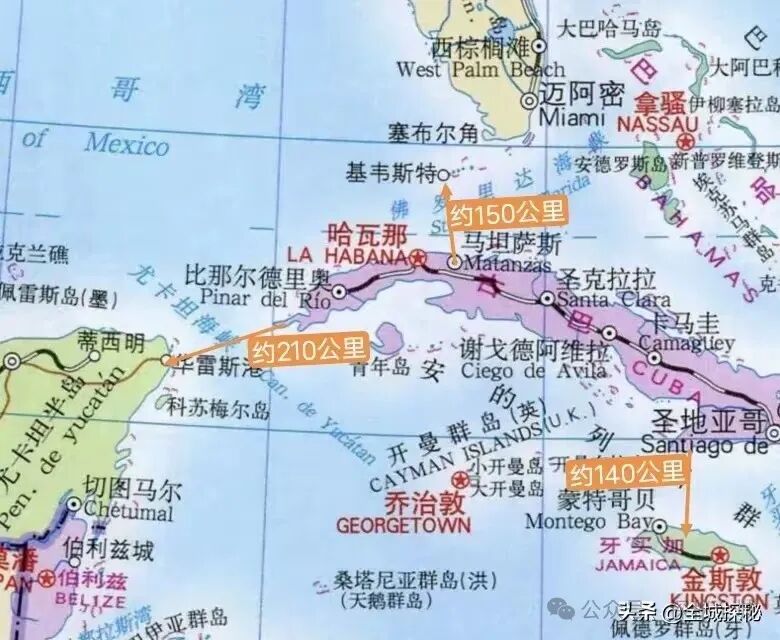 而古巴,虽然同样跟美国隔着一片海洋,但距离却跟亚欧大陆的国家完全不同;