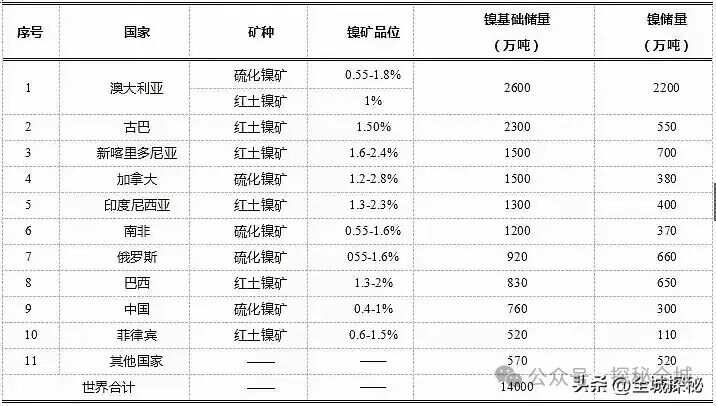 各国镍矿储量