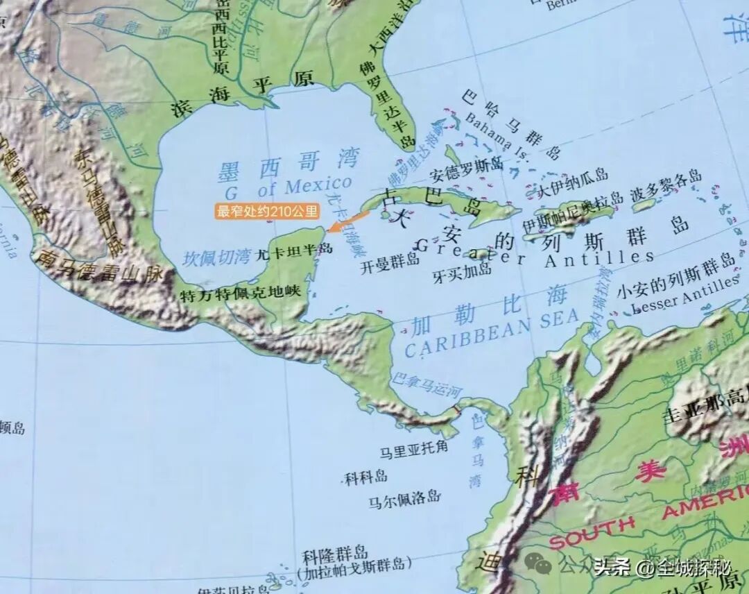 尤卡坦海峡最窄处仅210公里