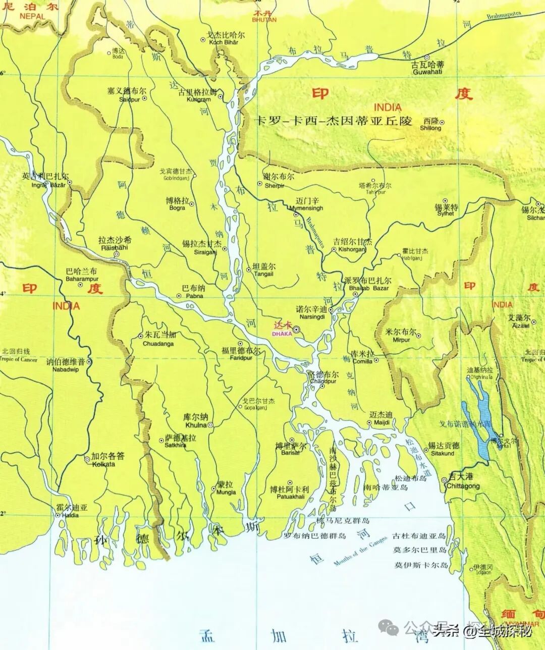 要知道,孟加拉国的面积也才14.7万平方公里,除了东南方向上毗邻孟加拉湾的那条狭长地带外,几乎全部国土都处在恒河三角洲上。