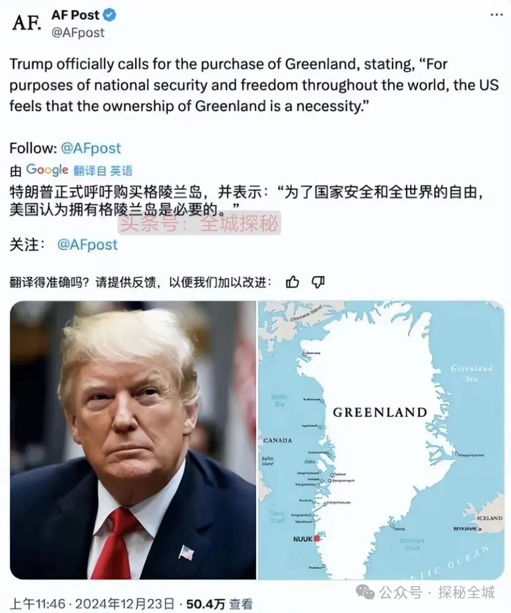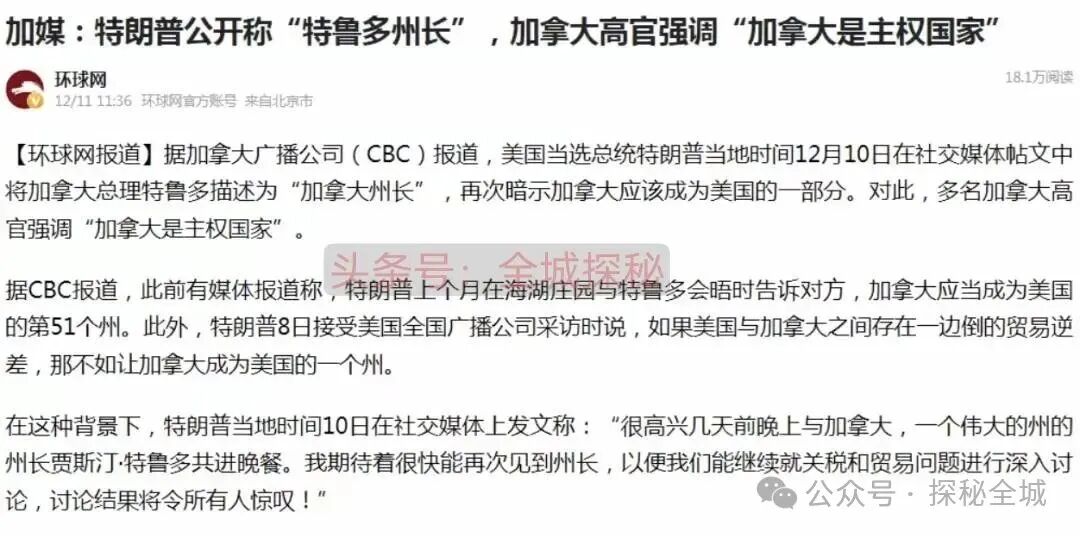 也正因如此,全城探秘认为,特朗普提出让加拿大加入美国成为其第51州,以及收购格陵兰岛等言论,虽然属于“嘴炮开疆”,但我们决不能将其看做一句空话;