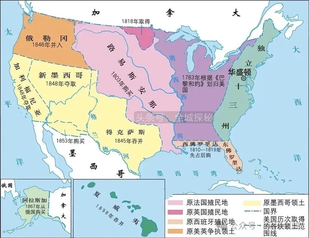 (全城探秘所有原创首发文章,抄袭洗稿必究!)近代西方列强中,相比英法德俄等国,美国对土地的欲望是最小的,可能这是国内不少人的看法;