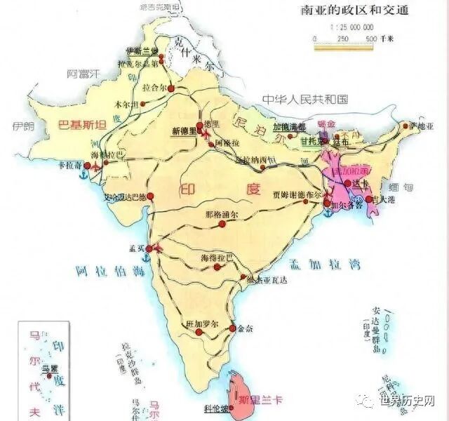 一部分是人口少、面积大的巴基斯坦本土,另一部分是人口多、面积大的孟加拉国(原东巴基斯坦)。小领土。而印度也被孟加拉国一分为二。东部是阿萨姆人和其他与印度原住民语言和品种不同的少数民族,西部是印度教和印地语为主要语言的原住民。连接巴基斯坦东西部的海路可以被印度海军切断,印度通往阿萨姆邦东北部地区的陆路也可以被东巴基斯坦(孟加拉国)轻易切断。