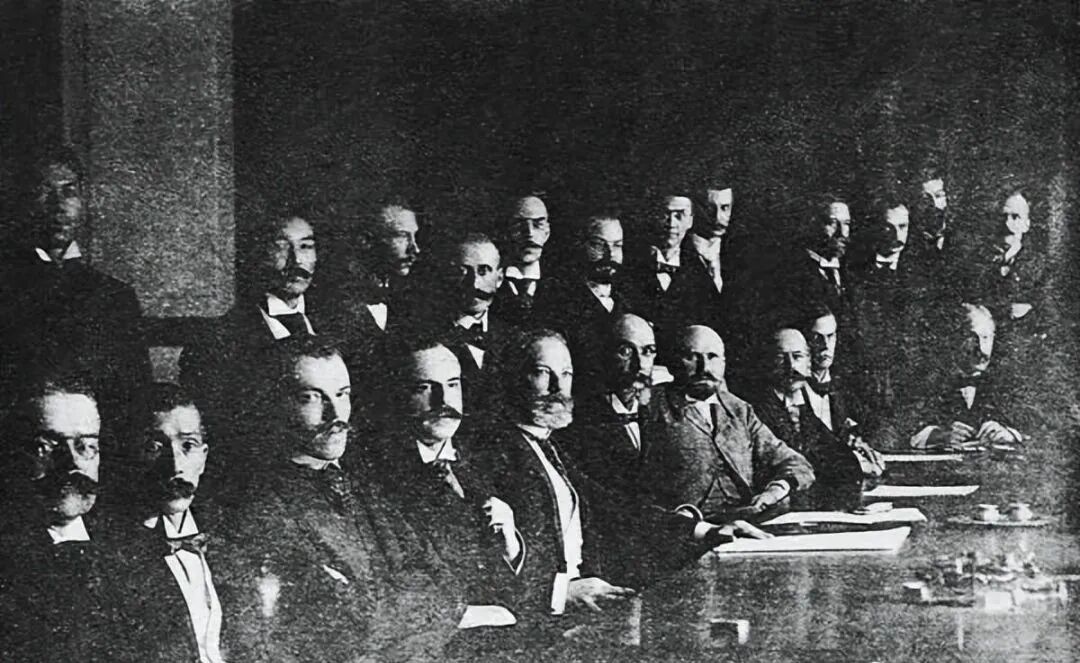 图5 签订“北京条约”时的情景:美、英、德、俄、西、奥、比、意、日、荷等国的全权公使