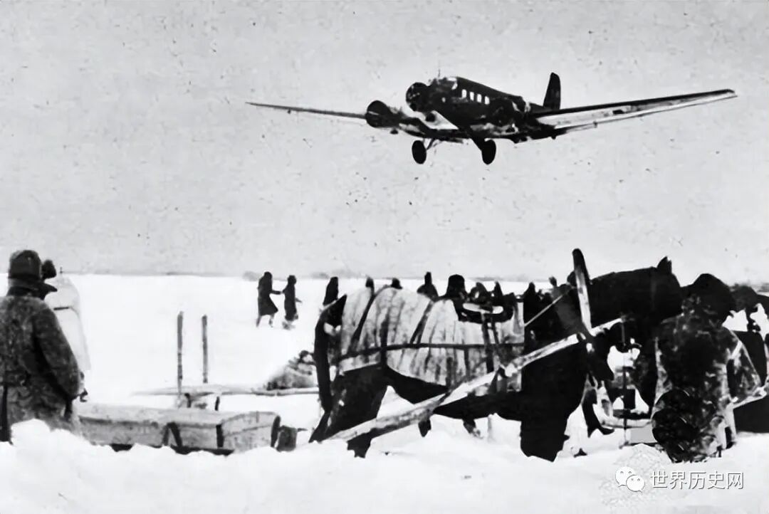▲1942年底,一架德军的容克Ju 53运输机降落在斯大林格勒周边