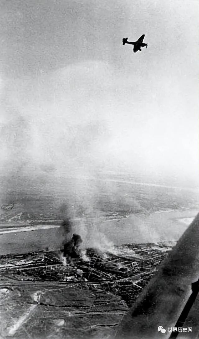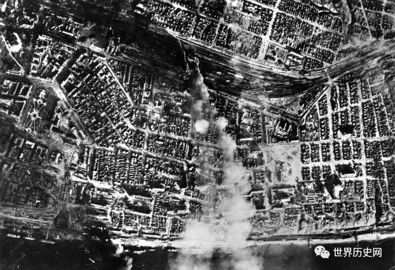 ▲德国空军针对斯大林格勒中央车站的空袭后,市内升起滚滚浓烟