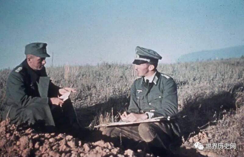 ▲在斯大林格勒附近,德军连排长之间在交换作战意见