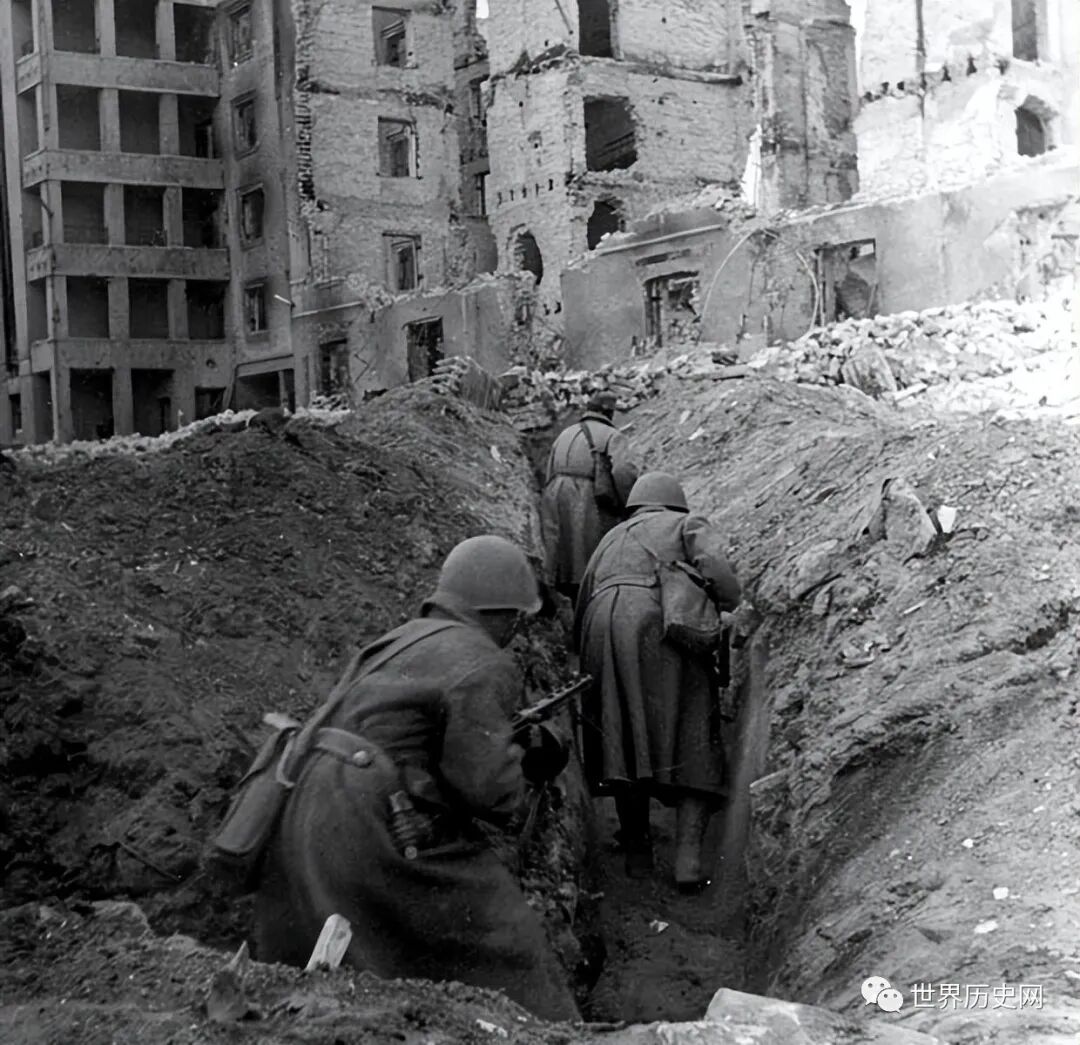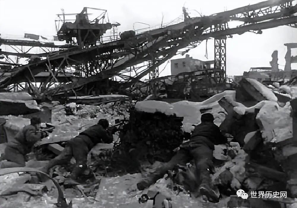 ▲1943年2月,向一处建筑发起突击的苏军士兵