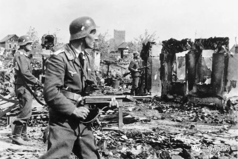 ▲在针对火车站的争夺战中,参与进攻的第24装甲师的德军士兵