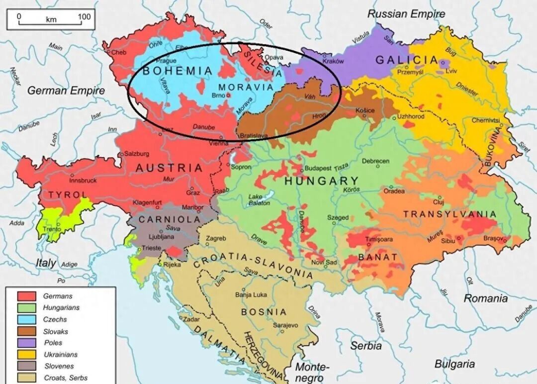 捷克和斯洛伐克在奥匈帝国境内的大致区域
