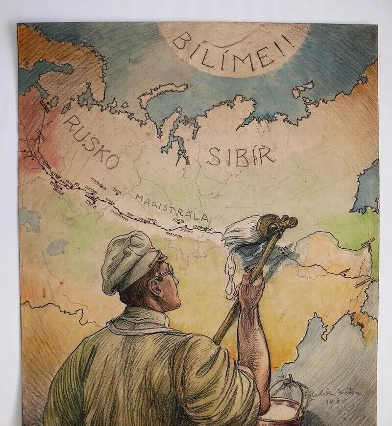 以漂白象征捷斯军团控制西伯利亚铁路的白军宣传画