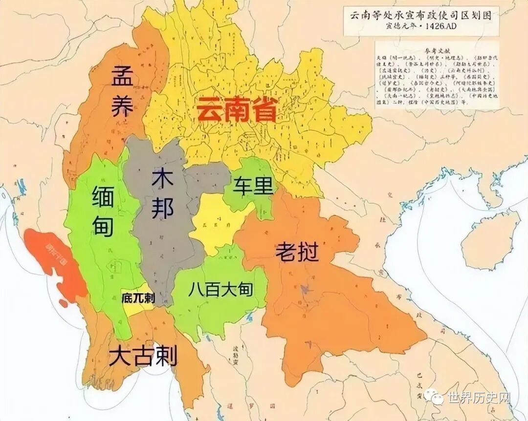 1382年,明军进入云南,元缅宗藩关系被明朝继承,明朝在中南半岛设置了多个宣慰司。明中后期,明朝国力衰退,再也无力经营外藩,多处的宣慰司名存实亡。