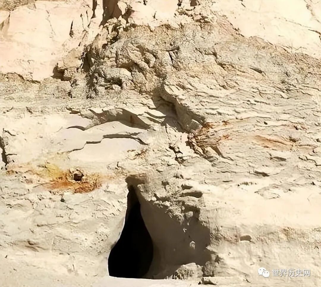 接着,刘渔在青海托素湖南岸一座200多米的矮山脚下,看到了三个造型都近似三角形、但大小十分不一的山洞:除了中间那个离地面2米多高的洞以外,另外的两个较小的洞都已经坍塌。