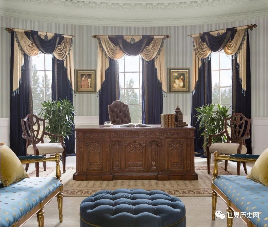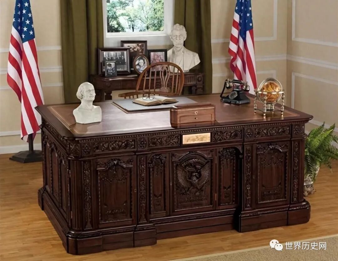 你有没有发现其中的共同点?没错,就是那张古香古色的圆角办公桌!跨越了130多年的时光,它仍旧立在美国总统办公室里,不管谁搬进了白宫、带了多少家具,这桌子都没有被换掉!