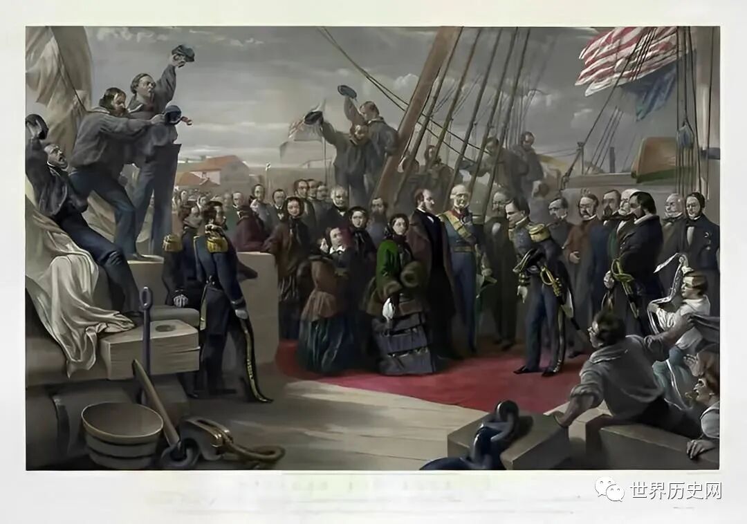 1856年11月,“坚毅号”修缮工作完成,美国海军中校亨利•哈特斯坦亲自护送,把它一路送到了英国。当时的维多利亚女王得知之后非常感动,亲自参与了交接仪式,并且登船向亨利中校表达了谢意。