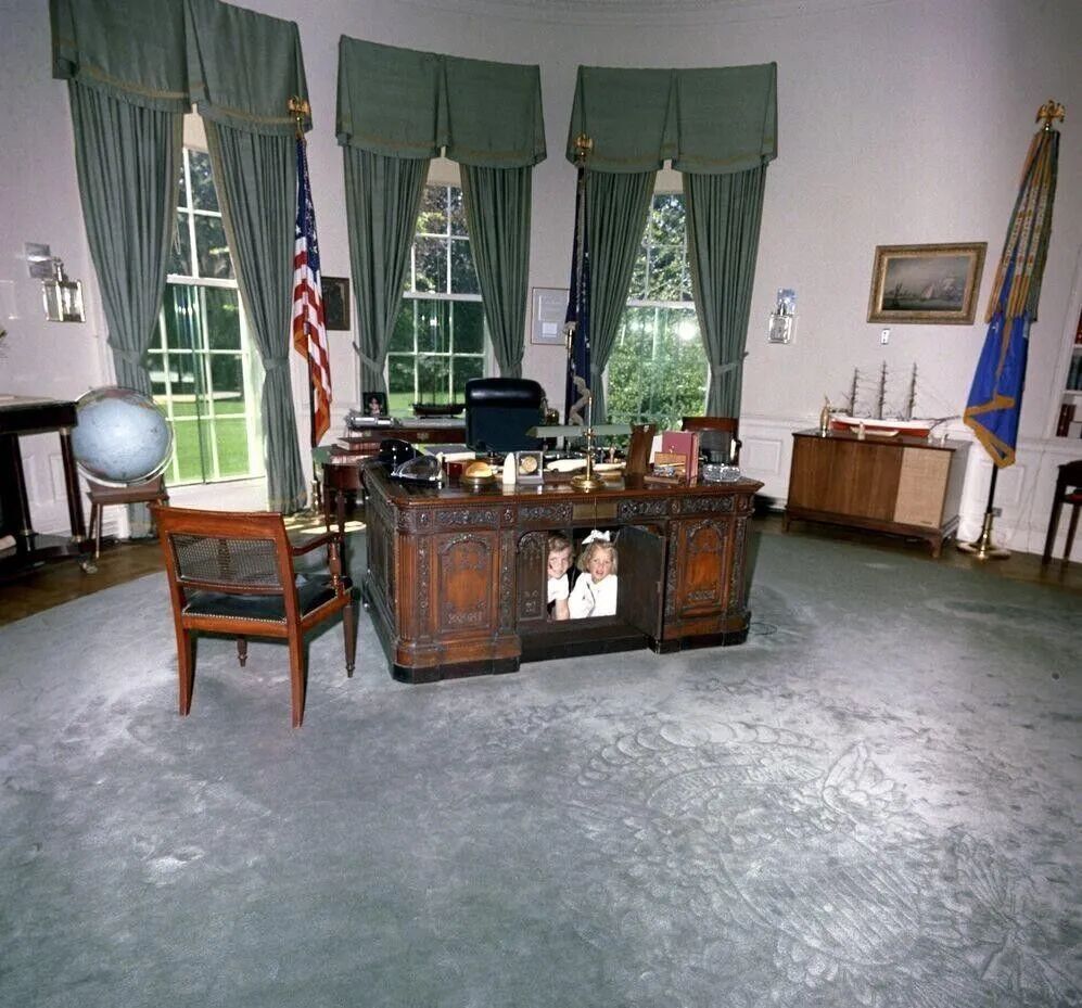 在他之后接任的尼克松、福特这两位总统,也没有机会使用这台桌子,因为直到1977年,“坚毅桌”才被白宫找回,重新作为总统办公桌来妥善安置。在此之前,这三位总统的任期已经结束,都搬离白宫了。