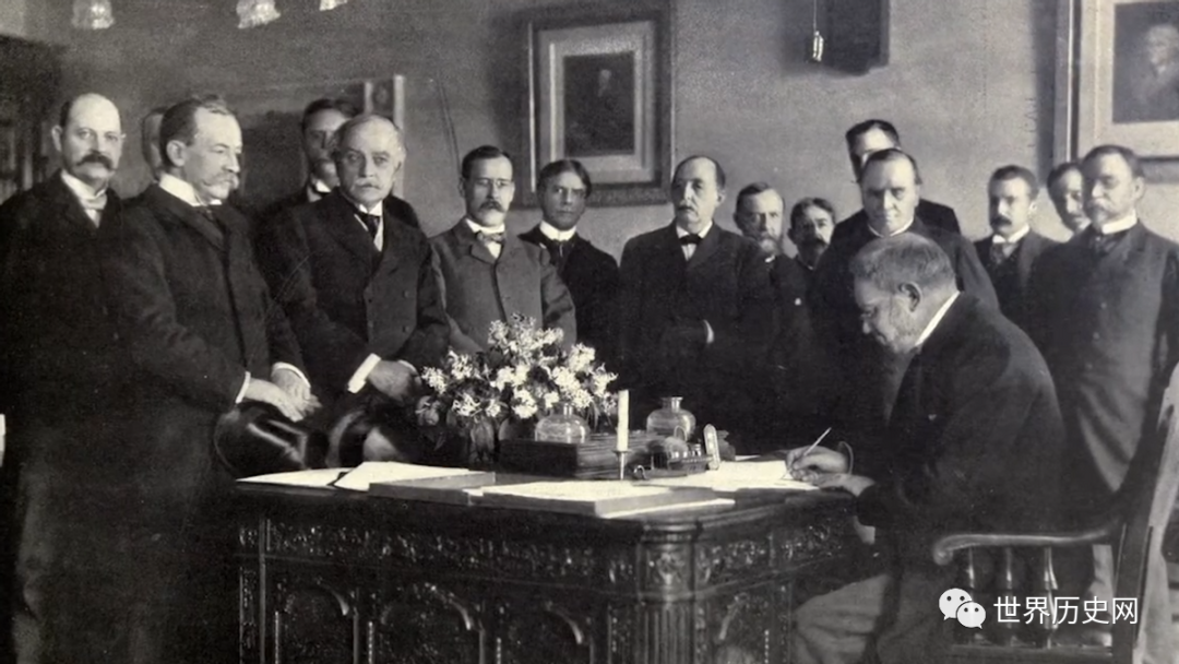 这是1880年美国总统拉瑟福德·海斯在办公。