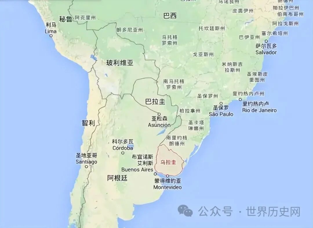 1811年,葡萄牙占领了乌拉圭的首都蒙得维的亚并将其改为巴西省的一部分,直到1825年,乌拉圭才获得了正式的独立。