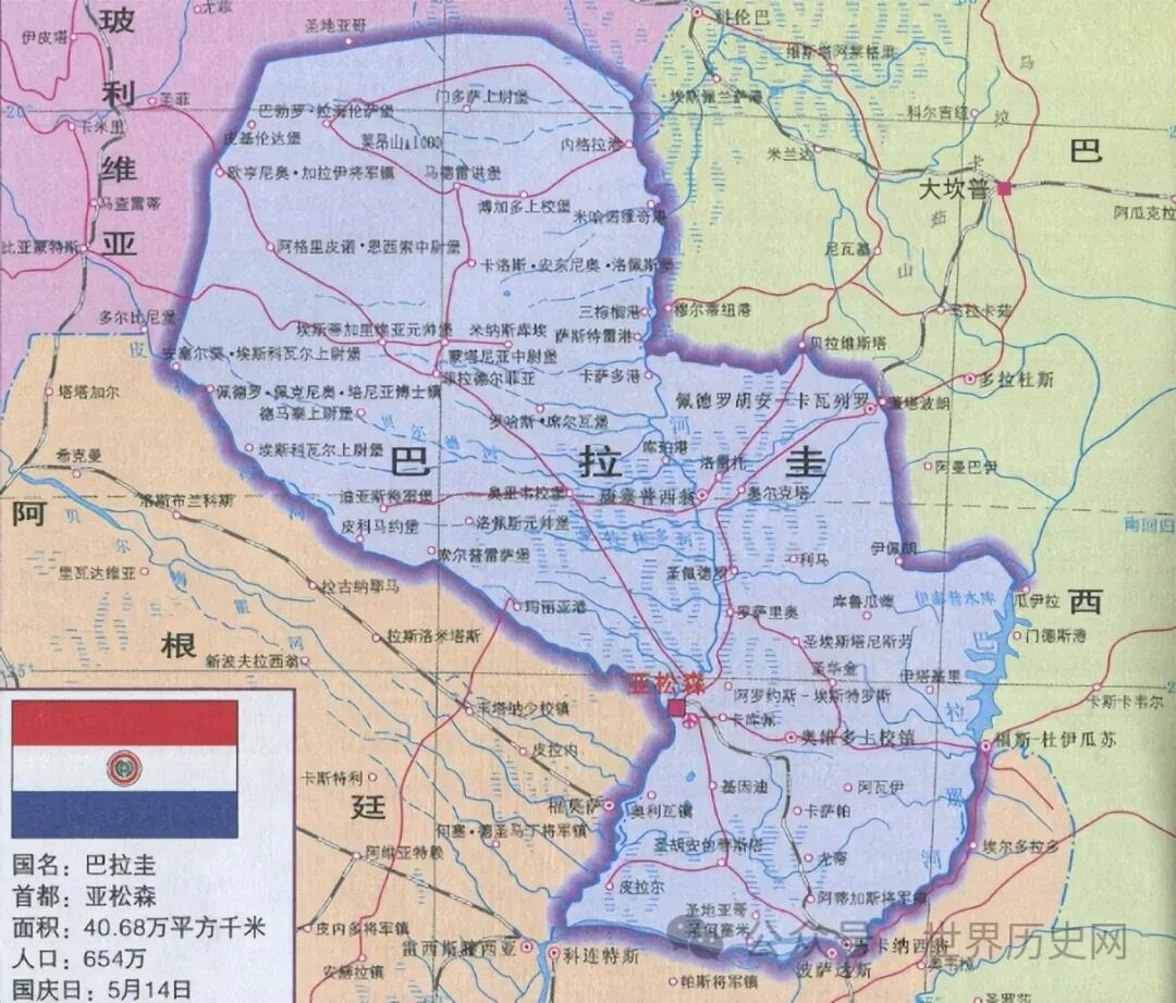 巴拉圭(The Republic of Paraguay)是位于南美洲的内陆国家,其名称来源于古瓜拉尼语“Paraguay”,意为“水之大河”。这个名称可能指的是巴拉那河,该河流经该国境内并在与阿根廷交界处汇入帕拉那河。