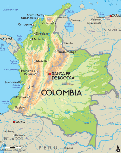作为南美洲唯一同时拥有两大洋海岸线的国家,哥伦比亚面积超过114万平方公里。三分之二都是热带雨林茂盛的大河冲击平原,另外三分之一是古火山喷发与板块冲击形成的熔岩高原。与大多数拉丁美洲国家类似,哥伦比亚的人口也主要分布在沿海与凉爽平坦的高原地区,热带雨林广布的平原人口稀少。