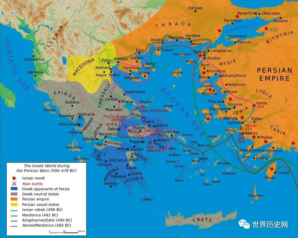 波斯虽然凭借巨大的国力优势,占领了希腊北部大片领土,却始终无法攻下希腊两个核心城市,雅典和斯巴达,波斯这次入侵欧洲不算成功。