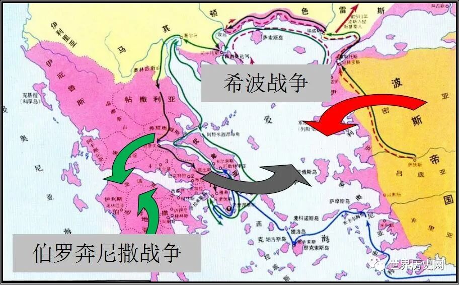 而波斯帝国在占领小亚细亚之后,越过土耳其海峡,拿下了色雷斯,将势力一直延伸到马其顿地区。随后对希腊各城邦展开了旷日持久的持续围攻。自大流士一世后期开始,波斯数次进攻希腊,这就是历史上著名的希波战争,这场战争持续了五十多年,波斯多次被希腊各城邦依托地形优势以弱胜强,最著名的就是温泉关战役。旷日持久的频繁远征,最终极大地损耗了波斯国力,导致了一个无比强大的波斯走向了衰落。
