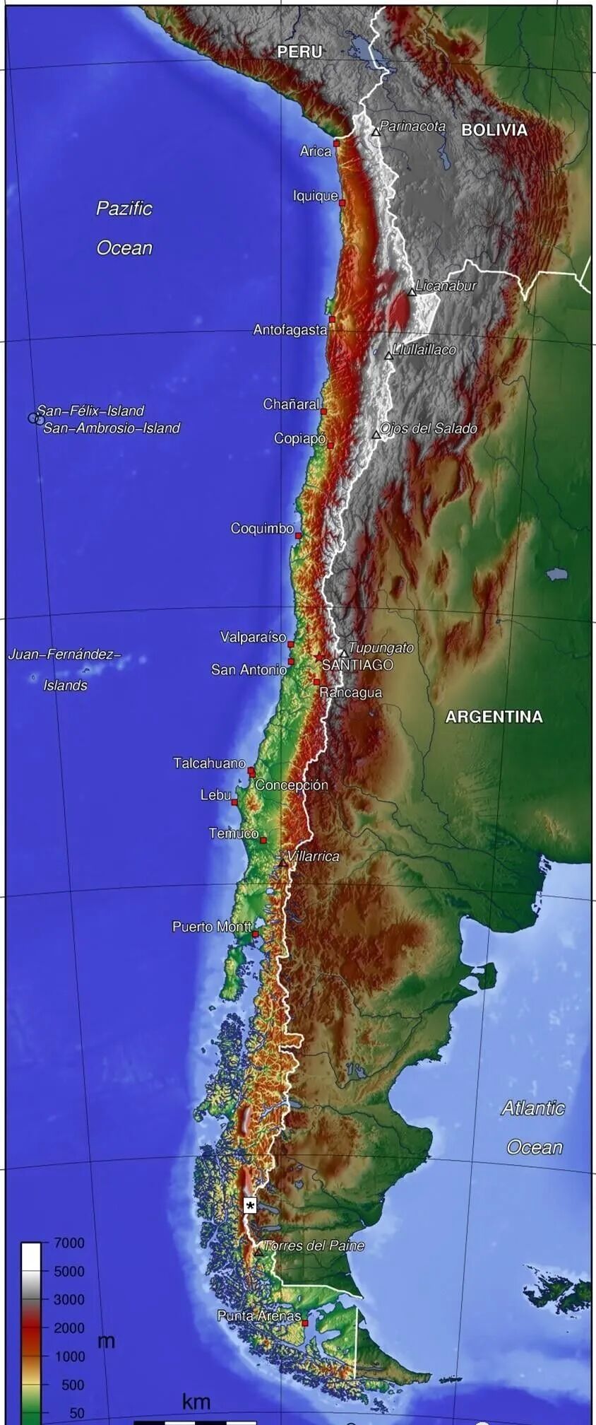 这其中首要的原因当然就是因为安第斯山脉。安第斯山脉平均海拔4000米,在现代之前想要穿越确实很难,所以介于安第斯山脉以西的智利和以东的阿根廷等国形成不同的国家也就非常正常了。