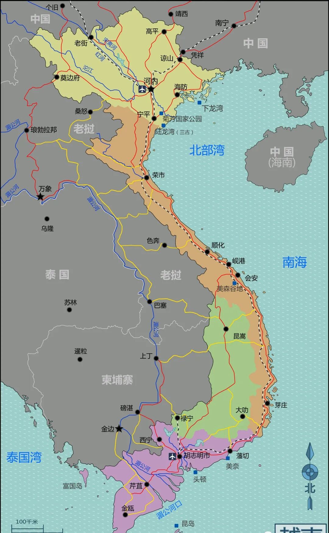 提起世界上的狭长国家,很多人的第一反应是我国的邻居越南。越南位于中南半岛东侧,南北长1600公里,东西最窄处50公里,然而,越南虽然长,在“狭”上却略显不足,越南真实的形状更像一个哑铃,中间窄两头大,一头是红河三角洲,一头是湄公河三角洲。