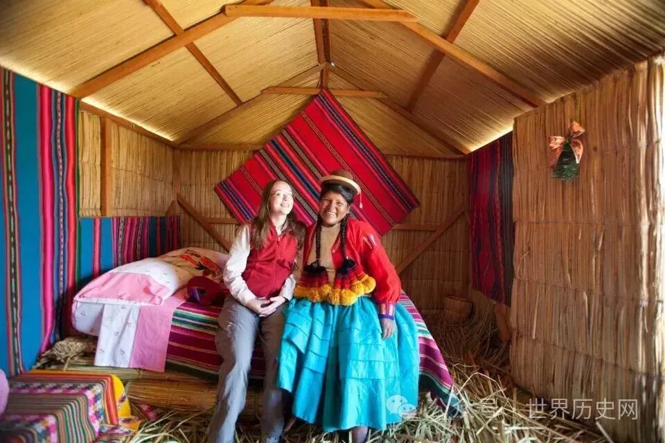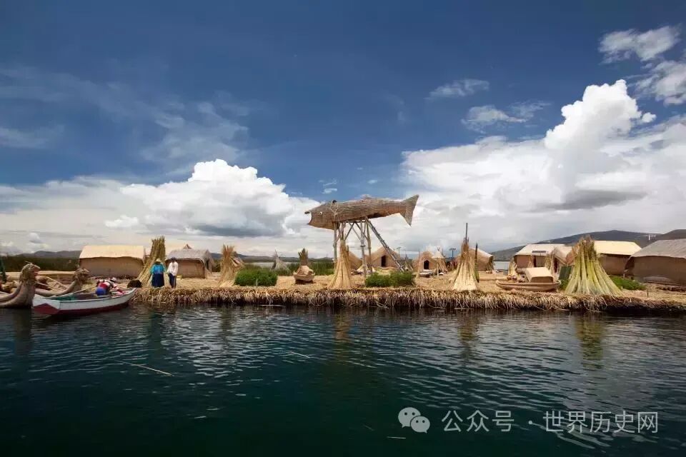 的的喀喀湖中有51个岛屿,大部分还有人居住,据说1000年前,乌鲁人为了躲避印加人的侵略,用湖里生长的香蒲草和芦苇捆扎成巨大的漂浮岛,生活其上与世隔绝。