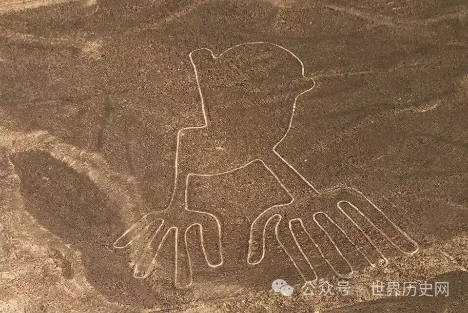 在距离秘鲁首都利马不远的纳斯卡的荒漠上,有几幅巨大的、笔触规律的、线条清晰的地画,面积太大以至于从谷歌地球上就能看得清清楚楚。
