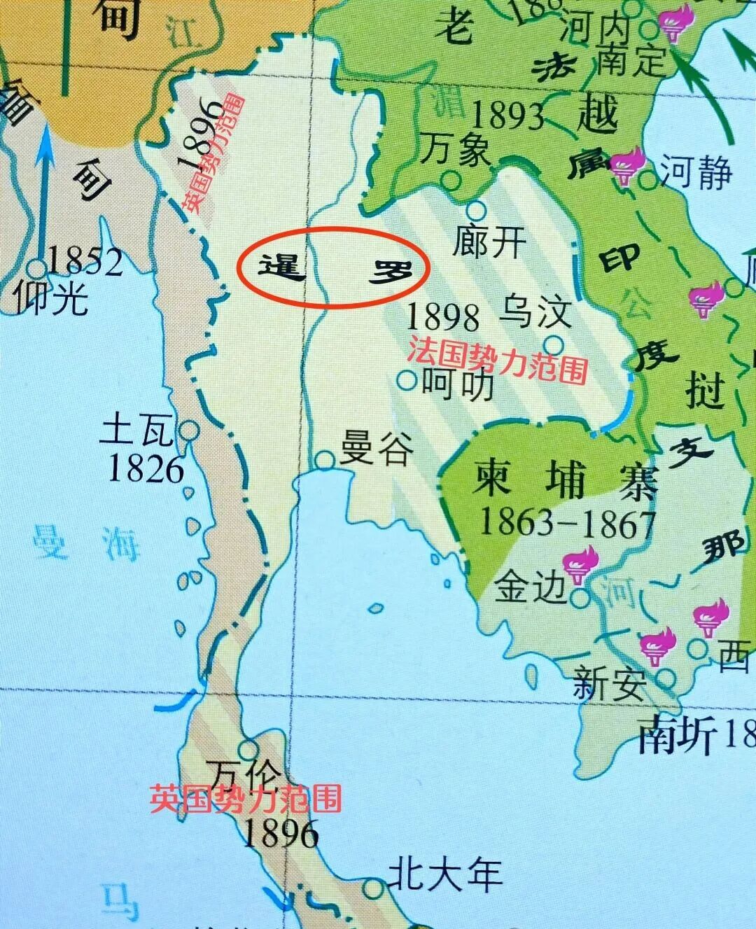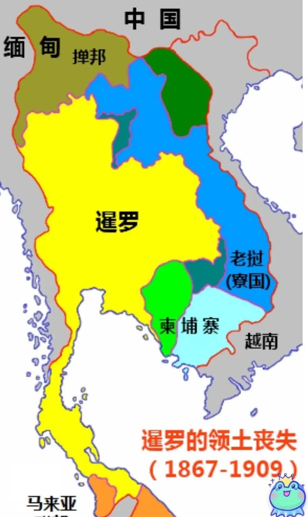 不过,暹罗还是不可避免的失去了很多土地,其中对割取土地最多的就是法国。1893年,法国占领湄公河左岸,暹罗失去了对老挝的支配权。1902-1904年,法国又从暹罗割取了湄公河右岸原老挝的土地。1907年,法国从暹罗夺取了原属柬埔寨的马德望和暹粒两省。